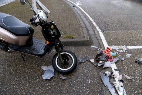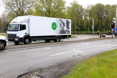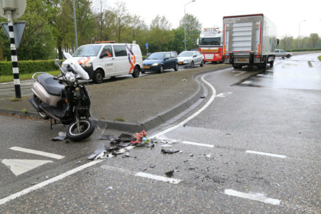 Scooterbestuurster gewond na botsing met vrachtwagen (3 foto’s)