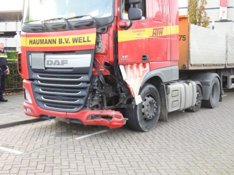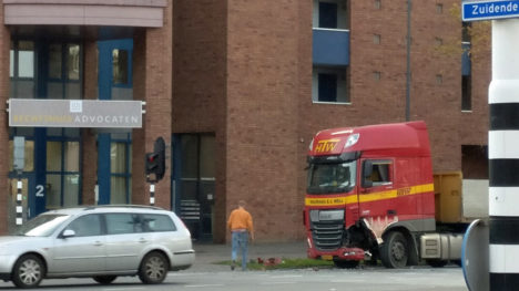 Vanmiddag rond 3 uur was er op de Traverse een aanrijding tussen een lesauto en een vrachtwagen. De met beton geladen vrachtwagen reed op de lesauto die voor het stoplicht ter hoogte van de kruising met de Stationsstraat stond te wachten. Zowel de vrachtwagen als de lesauto zijn hierbij zwaar beschadigd. Er vielen geen gewonden.