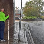 We vroegen Harrie Fotografie vanmiddag om ook eens langs te gaan. Op onderstaande foto’s zie je wat zijn camera (met hoogtestatief) vastlegde. Daarop zien wij wel enkele scheurtjes in de gevel, maar geen muurbeugel. Wellicht bedoelde de woordvoerster de deels uitstekende baksteen die los lijkt te zitten?