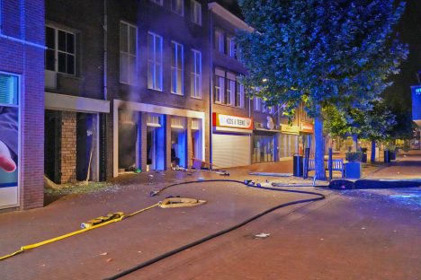 Om 03.35 uur vannacht rukte de brandweer uit voor een brand in een winkel aan de Ameidestraat. Ter plaatse bleek dat de pui van het winkelpand door een explosief eruit was geblazen met een brandje als gevolg.