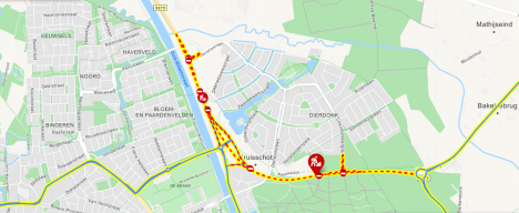 - Weekend 1 (van 1 tot en met 4 juli): de Wolfsputterbaan is afgesloten vanaf de rotonde Weg naar Bakel tot aan de Rembrandtlaan inclusief de aansluiting vanuit Dierdonk Coendersberglaan op de Wolfsputterbaan.