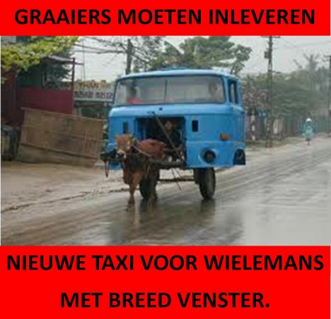 Ach Tielemans is er kapot van. Waarvan dan. Omdat hij niet meer op kosten van de burger een taxi kan nemen, of omdat hij deze stad in diskrediet heeft gebracht?