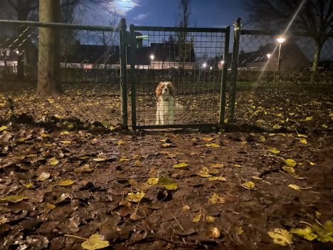 Onderweg kwam ik vele uitlaatstroken tegen. Zo ook 1 bij mij in de wijk Helmond Noord. Achter de oude St Jorisschool op het Coffermanspad zit een uitlaatstrook met een hek erom. Omdat mijn hond wegloopt wanneer hij de kans krijgt (hij heet niet voor niets Trubbel) is dat hek wel erg fijn.