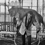 Ik leerde Jos bij toeval kennen via een aap die hij had gered uit een jarenlange situatie van mishandeling. Het dier moest weer leren ‘aap te zijn’ en werd daarom tijdelijk bij mijn paardentrainer in Mierlo ondergebracht. Jimmy heette het beestje dat in een grote ren boven de paardenboxen de stal terroriseerde. Als Jimmy je niet mocht, moest je oppassen, want hij pieste je zo op je hoofd terwijl je je paard stond te zadelen. En dan was er nog een grote volwassen struisvogel die als een speer door de binnenmanege rende met een ruiter op zijn rug. De dompteur had ook een jonge olifant in de toenmalige Helmondse Manege gestald. Die stond samen met zijn vriendje, een geit, in een grote box. Het tweetal was onafscheidelijk. En ik herinner me nog de koe die als een paard was afgericht en over een hindernisje sprong terwijl er een hond op zijn rug zat.