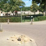 Wie, o wie, is verantwoordelijk voor deze blunderende verkeerssituatie? En wat heeft hem of haar gemotiveerd? Normaal gesproken hebben paaltjes de functie het verkeer tegen te houden of iets te beschermen. Hier is blijkbaar sprake van een ander doeleinde. Maar welk? Ik kan ik me niets bij voorstellen. Eén van mijn kennissen verzucht bij dit soort rare zaken: “Daar is waarschijnlijk iemand op afgestudeerd”. Het zal wel!