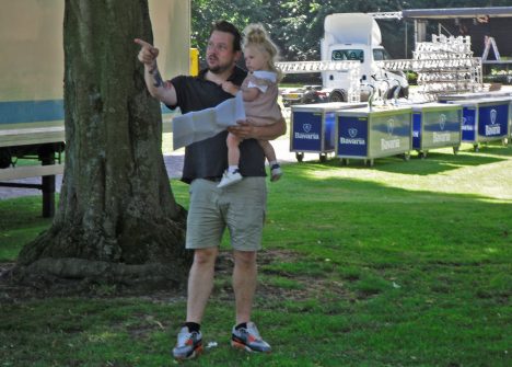 In de kasteeltuin werd vanochtend weer hard gewerkt om alles gereed te krijgen voor het eerste Kasteeltuinconcert sinds bijna 3 jaar. Maandag waren de eerste vrijwilligers en professionals daar al aan de eerste klusjes begonnen. Facilitaire zaken als de stroomvoorziening aanleggen, lampjes ophangen en de hondendrollen verwijderen van de prachtige groene grasmat. Dat vertelde Geert Blenckers, de organisator van het evenement, die zijn dochter Amélie mee had genomen naar zijn werk.