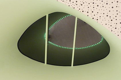 Mien keek in het nieuwe stationsgebouw omhoog en zag daar deze lichtkoepel die steeds van kleur verandert. Hij maakte & mailde deze foto’s. Daarvoor onze dank, want ook wij dachten dat het een mooie was voor deze kenniskwis.