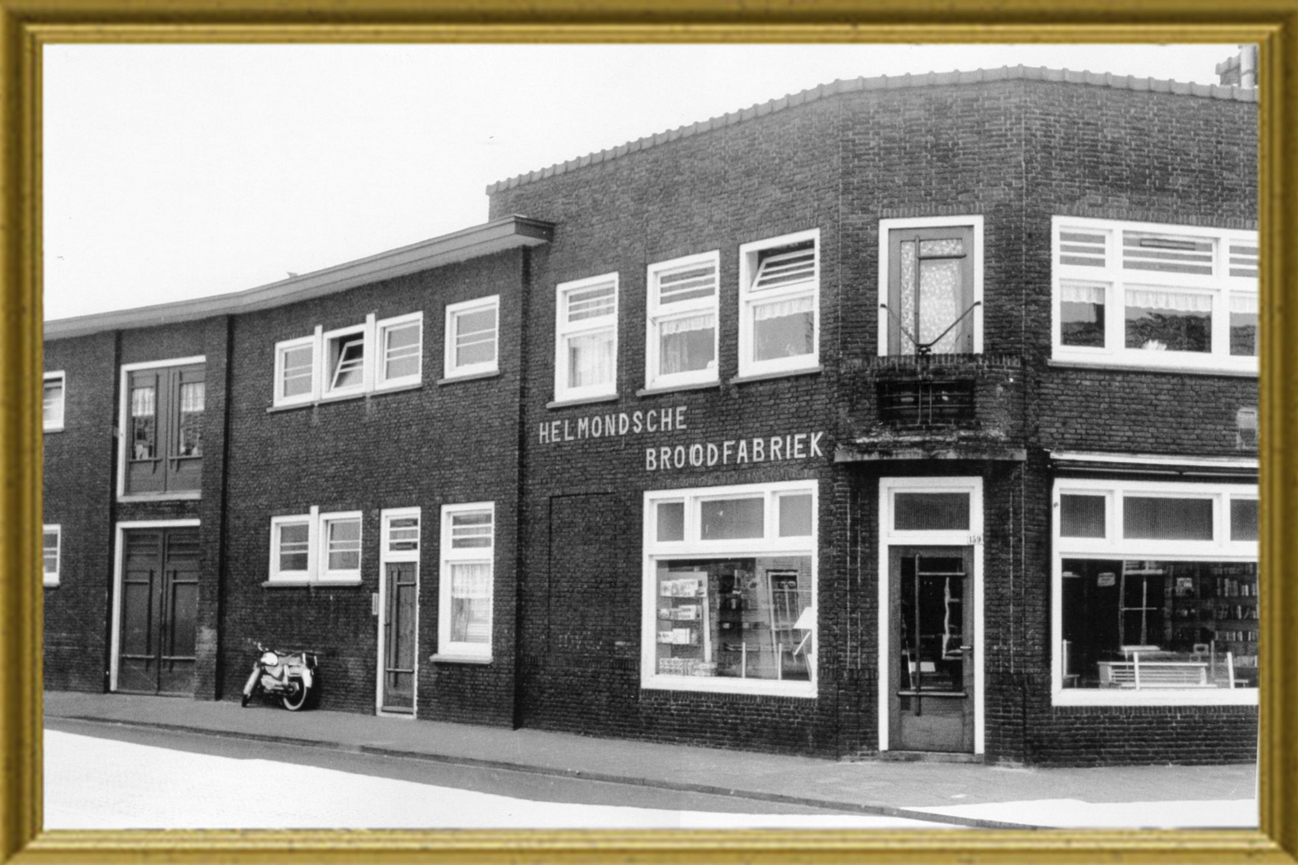 In 1931 vestigde de familie Kenter de Helmondsche Broodfabriek op de hoek van de Heistraat en de Blinkertsestraat. De Vruuger-foto werd in 1961 gemaakt.