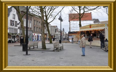 Naw kiekte de fotograaf de Markt en Veestraat. Het witte pand aan de linkerkant herbergt Il Borgo, de beste horecazaak van het centrum.