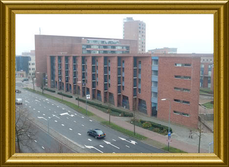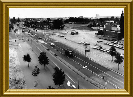 Naw zie je appartementencomplex ’t Cour aan de Kasteel Traverse en op de achtergrond de Callenburgh. Over de bouwstijl van ’t Cour dat werd gebouwd in 1998 – 1999, lopen de meningen uiteen. Vruuger (in 1980) was er vooral braakliggend terrein dat hier en daar in gebruik was als parkeerterrein.