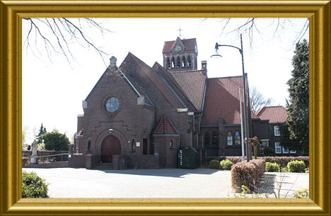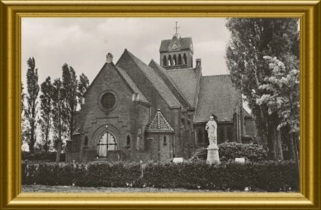 In de oude kern van Brouwhuis zie je Naw de kerk van Onze Lieve Vrouw Middelares aller Genaden. Vruuger (rond 1960) exact hetzelfde bakstenen bouwwerk uit 1929. Daaromheen wel wat veranderingen: groen verdween, een kerkplein ontstond en het witte Heilig Hartbeeld ging van rechts naar links.