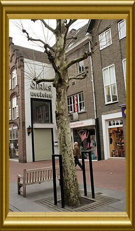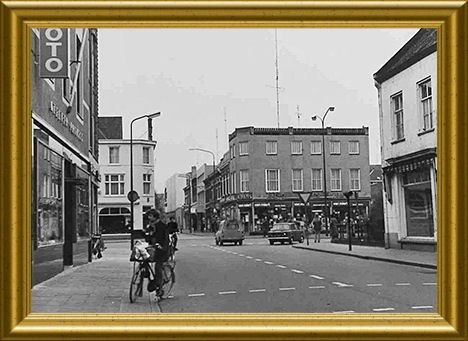 Vruuger (1972) zat links het foto-atelier Prinses en het witte pand daarachter was de meubelzaak van Dirks. Aan de rechterkant zat Adams en (deels zichtbaar) de radio- en televisiewinkel Van Rijt. Veel veranderd in een relatief korte tijd.