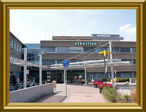 Naw zie je de achteringang van het Elkerliek ziekenhuis. Deze week was het Elkerliek in het nieuws omdat de operatiekamers een dag (PDF) moesten sluiten. Vruuger (1977) werd aan de rechterkant de toen nieuwe polikliniek gebouwd. De kijkers stonden er omdat het hoogste punt van de bouw werd gevierd.