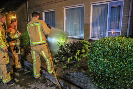 Vannacht om 04.03 uur rukte de brandweer uit voor een brand in een struik in een voortuin bij een woning aan de Klaproosstraat in Helmond Oost. Bij de brand werd een busje van vermoedelijk haarlak aangetroffen waarmee de brand zou zijn gesticht. De brand was snel geblust en er is niemand gewond geraakt. Harrie Fotografie maakte daarvan de onderstaande foto’s.