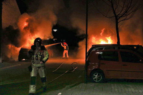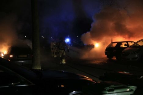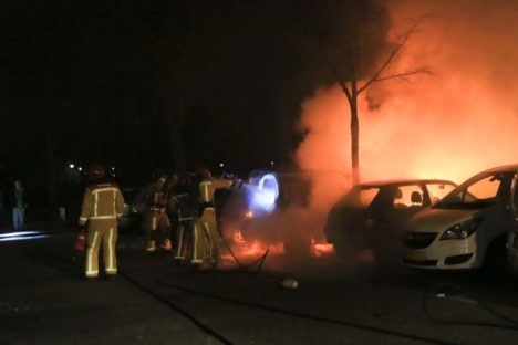 Kort voor 03.00 uur vannacht werd de brandweer gealarmeerd door een oplettende buurtbewoner voor een autobrand aan de Waalstraat in Brouwhuis. Bij aankomst bleken er 2 auto’s in brand te staan die aan weerszijde van de weg geparkeerd stonden. Het betrof een busje en een personenauto. In het busje lag een gasfles die er door de brandweer tijdig uitgehaald is.