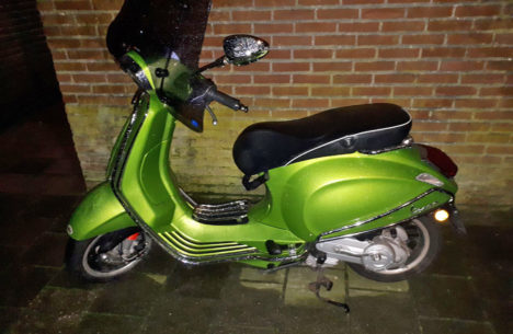 De politie heeft vanavond 3 personen aangehouden bij een grote actie tegen witwassers. Deze controle vond plaats in ’t Haagje en ook bij een garagebedrijf elders in de stad vond onderzoek plaats. Er werden drugs aangetroffen en in totaal 8 voertuigen, waaronder onderstaande scooter, door de politie in beslag genomen.
