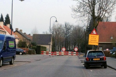De Dorpsstraat in Stiphout is sinds vandaag volledig afgesloten vanwege  noodwerkzaamheden aan de rijbaan. Vrijwel direct bij binnenkomst van het dorp via de Dorpsstraat is de weg opengebroken en afgesloten. Naar verwachting van de gemeente zullen de werkzaamheden tot en met vrijdag plaatsvinden. Het verkeer wordt omgeleid. Onderstaande foto werd gemaakt door Michen.