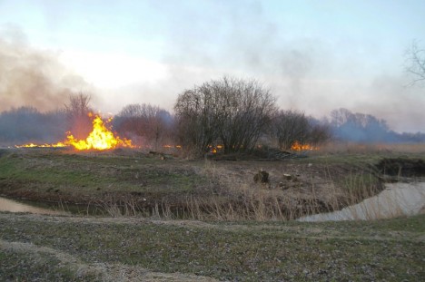 Bij het Piet van Bokhovenpad en de Marslaan was vanavond rond half 9 weer een rietbrand. Op 1 april (zie hieronder) was hier ook al een brand.