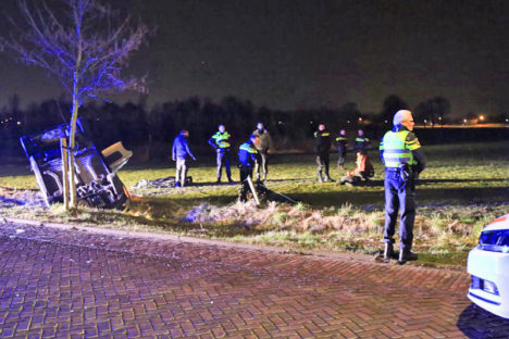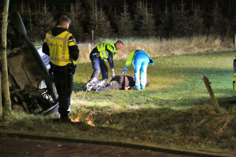 De 4 mannen pleegden op 21 februari woninginbraken in Helmond, Bakel en Nuenen en namen daar onder meer een tablet, laptop en spelcomputer mee. De politie kwam ze na de laatste inbraak in Nuenen op het spoor en zette de achtervolging in. De auto van de verdachten raakte uiteindelijk van de weg en belandde op de kop in de sloot in de Wilhelminalaan in Aarle-Rixtel. Daar kon het viertal worden aangehouden, Harrie Fotografie maakte daarvan de onderstaande 4 foto’s. Op de plaats van het ongeval waren zo’n 10 politievoertuigen en 2 ambulances. 3 Van de inzittenden werden met een ambulance en onbekende verwonding naar het ziekenhuis gebracht.