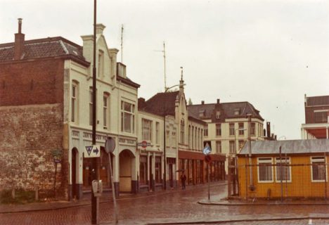 De laatste foto werd in 1973 of 1974 gemaakt. Links zie je daarop het garagebedrijf Van der Meulen-Ansems en woninginrichting Roelofs, rechts de bouwplaats voor nieuwbouw van de Vlisco.