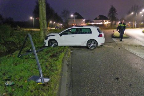 Vannacht heeft een personenauto in Dierdonk een lantaarnpaal om gereden en vervolgens tegen een boom gebotst. Dat gebeurde in een flauwe bocht van de Waterleliesingel.