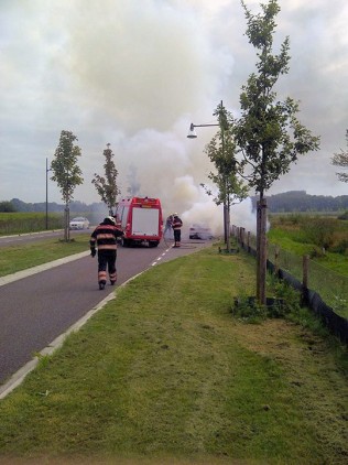 Een personenauto is tijdens het rijden spontaan in brand gevlogen. Dat gebeurde vanochtend kort na 10 uur op de Neervoortse Dreef, de vorig jaar geopende afslag Brandevoort aan de A270.
