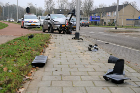 Toch flink hard gegaan volgens mij, anders rijd je niet een hele paal uit de grond????