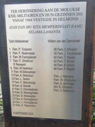 Ter herinnering aan de Molukse KNIL-militairen en hun gezinnen die zich vanaf 1964 vestigden in Helmond