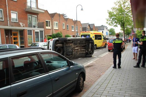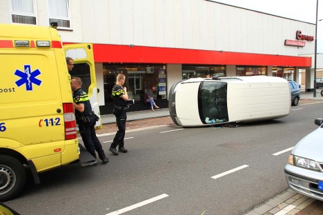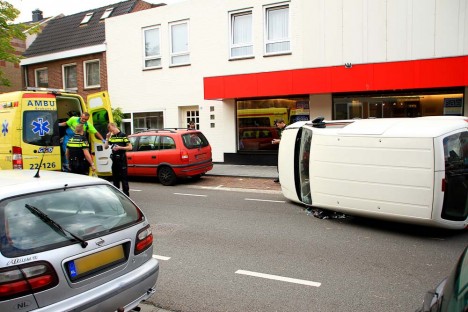 Bij een ongeval aan het einde van de middag raakte een automobilist gewond. De man verloor rond 17.30 uur de macht over het stuur van zijn bestelauto, raakte 2 geparkeerde auto’s en kwam daarna op z’n kant terecht.