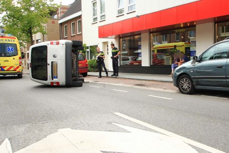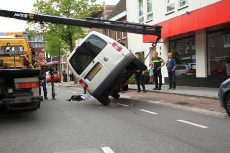 De politie doet onderzoek naar de oorzaak van het ongeval ter hoogte van Gruyters Wonen. De bestelauto is door een bergingsbedrijf weggetakeld.