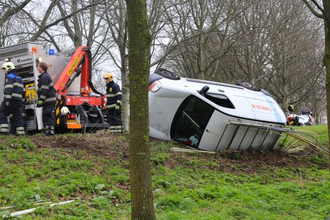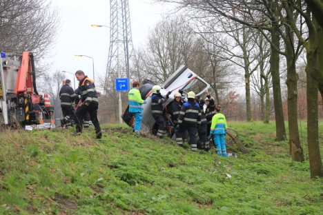 Bestelbus op zijn kant in Brouwhuis (foto’s)
