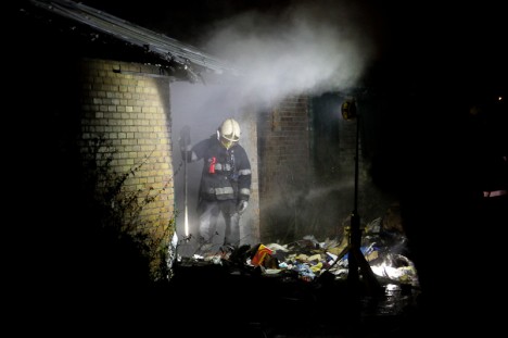 De loods is verdeeld in 4 compartimenten, 3 daarvan zijn verhuurd en in de tweede was de brand. Het zou gaan om huisraad. De oorzaak van de brand is niet bekend. Er zijn geen gewonden gevallen.