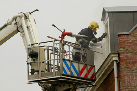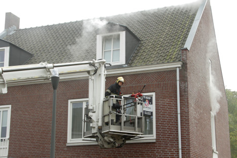 Misschien tegenaan gestoten door het “bakje” van de brandweer. Kan?