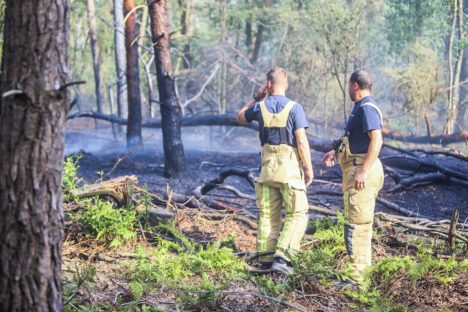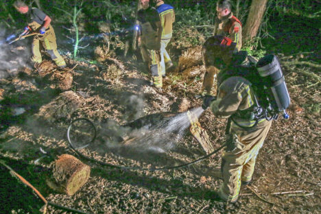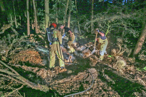 De bosbrand is onder controle. De brandweerlieden zijn nog bezig met nablussen. De eerste eenheden zijn al weer op de weg terug naar de kazerne. Het betrof een gebied met een omvang van ongeveer 20 bij 40 meter.