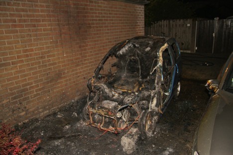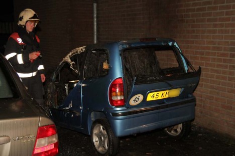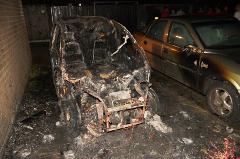 Aha! Dat was er dus aan de hand… Hoorde een doffe knal, daarna iemand roepen “we moeten weg hier” … Toen ben ik eens naar buiten gaan kijken en was er oplaaiend vuur. Al snel genoeg de politie en brandweer aanwezig. Maar tjonge jonge… Blijf van andermans spullen af!
