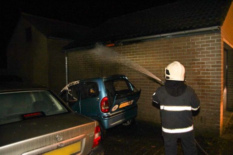 De brandweer die om 0.19 uur gealarmeerd werd, was snel ter plaatse en kon de brand snel blussen. Maar het wagentje bleek niet meer te redden. De ernaast geparkeerde auto liep flinke schade op door de brand. Ook de garagebox aan de andere kant van het uitgebrande wagentje bleef niet ongeschonden. De oorzaak van de brand is nog niet bekend.