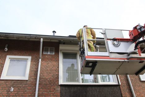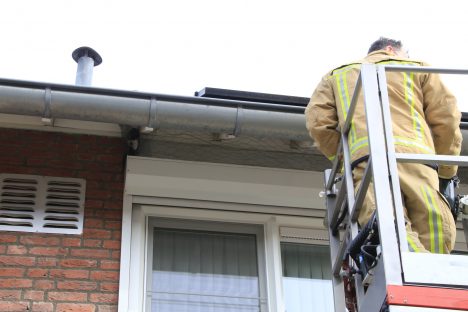 De bewoners hadden dat gaas tussen de dakgoot en een rolluik juist gespannen om vogels weg te houden. Hoe de vogel daarachter is gekomen is niet duidelijk. De dierenambulance riep de brandweer er om 10.00 uur bij omdat zij er niet bij konden. Nadat de vogel uit die benarde positie was gehaald, vloog die weg, het vrije leven tegemoet.