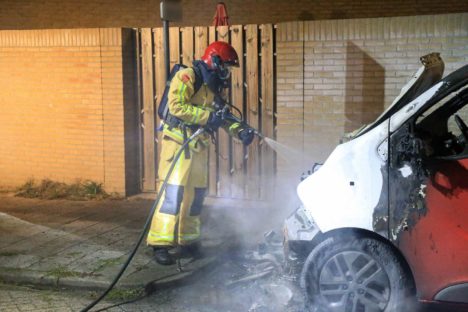 Busje op invalideplaats door brand verwoest
