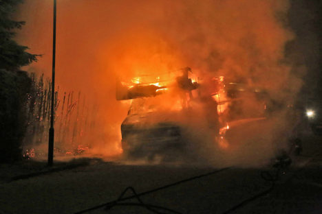 Rond 0.45 uur zagen buurtbewoners dat er een heg in de brand stond. Zij hebben toen meteen de bewoners gewaarschuwd en 112 gebeld. Nog voordat die bewoners buiten waren, was de brand al overgeslagen naar de camper. Toen de brandweer arriveerde stond de camper al volledig in vuur en vlam. De brandweer kon alleen nog maar het restant en de heg blussen. Er waren geen gasflessen in de camper aanwezig. Hoe de brand in de heg is ontstaan is niet bekend. De brand trok veel bekijks. Er raakte niemand gewond. De politie vraagt een ieder die iets heeft gezien of gehoord dit te melden op 0900 – 8844.