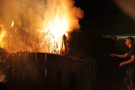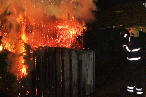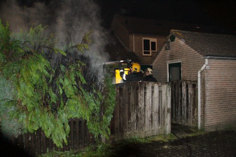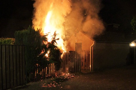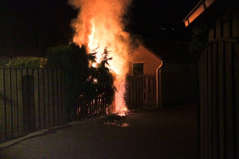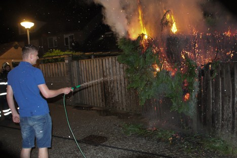 Coniferen en schutting in brand in Rijpelberg (6 foto’s)