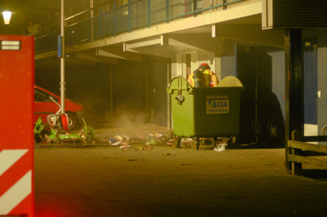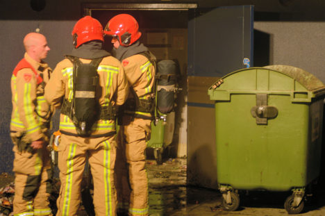 De container stond in het afvalhok onder de flat. Het trappenhuis en de lift die met rook gevuld werden, is door de brandweer zo goed mogelijk geventileerd. Er vielen geen gewonden.