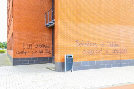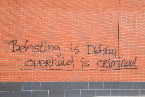 Gisteren bleken er op het oude Belastingkantoor bij het station muurschilderingen te zijn aangebracht. De kantoren in dat gebouw worden omgebouwd tot appartementen. Wellicht wilde de tekstschrijver een ieder er blijvend aan herinneren dat daar tot juni 2012 belastingambtenaren zaten…