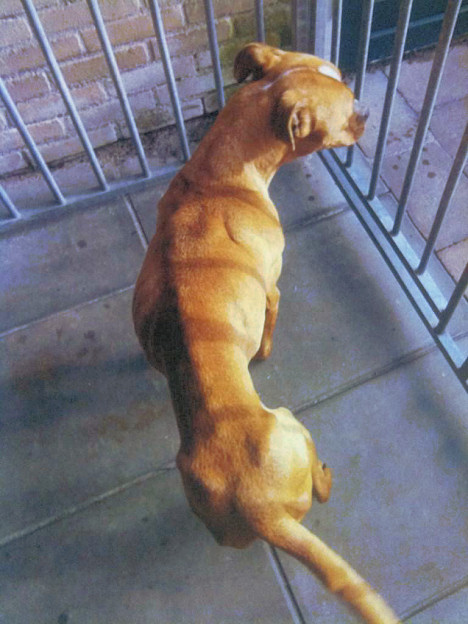 De dierenpolitie maakte deze foto van de broodmagere Staffordkruising:
