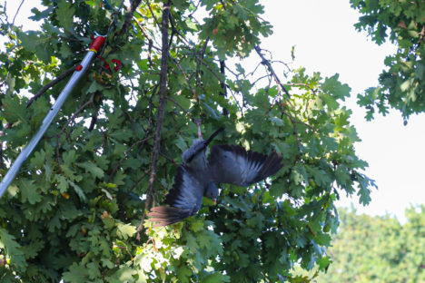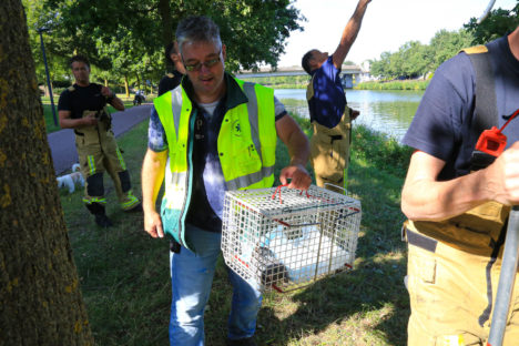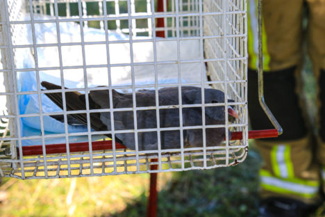 De gealarmeerd dierenambulance kon niet bij de vogel komen waarop de brandweer om 14.32 uur werd opgeroepen en met 2 voertuigen ter plaatse kwamen. Het viel toen nóg niet mee om bij het onfortuinlijke beestje te komen. Uiteindelijk werd de duif in Helmond Oost na ruim 45 minuten bevrijd en overgedragen aan de medewerker van de dierenambulance. De vogel werd meegenomen naar de kliniek waar de rest van de vislijn zal worden verwijderd en naar de toestand van de poot wordt gekeken.