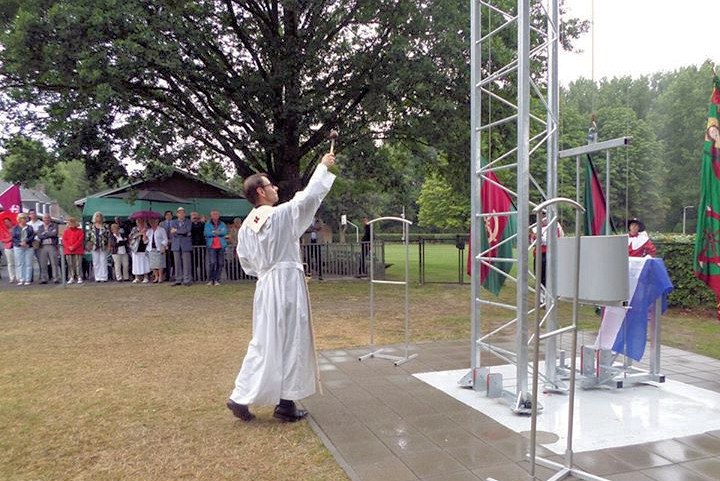 Gisteren werd (zoals hierboven aangekondigd) de nieuwe schutsboom van het Schutsgilde St. Catharina geïnstalleerd. Burgemeester Elly Blanksma (1 van de 5 eredekens van dit gilde) onthulde de bijbehorende gedenkplaat, de inzegening gebeurde door kapelaan Koopmans.