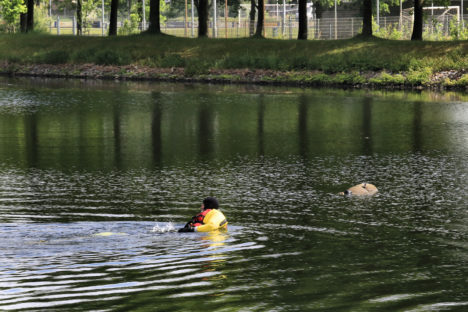 Er dreef vanochtend iets onbekends in het nieuwe kanaal bij de Rochadeweg. Opgeroepen duikers van het reddingsteam van de brandweer hebben het aan land gebracht. De aanwezige politie heeft de zak veilig gesteld, maar niet opengemaakt. Het team Forensisch Technische Opsporing (FTO) en de recherche is nu opgeroepen om het te onderzoeken. Zodra wij meer weten, staat dat (zoals altijd) in de reacties hieronder.