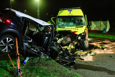 Bij het zeer ernstig ongeval tussen een ambulance en een personenauto kwamen 3 inzittenden van de auto om het leven. Er raakte 1 persoon ernstig gewond. 2 Ambulancemedewerkers raakten ook gewond. Dat maakte de politie zojuist bekend. Politieagenten informeren de nabestaanden.