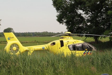 Een om 17.56 uur opgeroepen traumahelikopter landde. De arts van die helikopter ging met de ambulance mee naar het ziekenhuis .