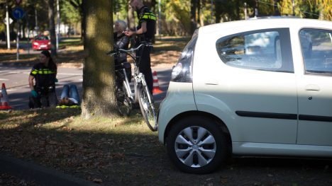 Een oudere vrouw op de fiets zag vanmiddag rond 14.40 uur een naderende auto over het hoofd toen ze de weg over stak. De personenauto kon niet meer uitwijken en schepte de fietsster waarna zij op de voorruit terecht kwam. Dat gebeurde bij het Nieuwveld in Helmond Noord. De ambulance heeft de vrouw meegenomen naar het ziekenhuis. De automobiliste kwam met de schrik vrij.