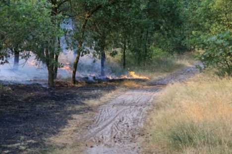 Het sein brand meester is zojuist gegeven. De brand bij het industrieterrein breidt zich niet meer uit. Bij deze zeer grote natuurbrand (aldus de brandweer) werden 2 pelotons blusvoertuigen (8 eenheden) ingezet en meerdere watertankwagens.